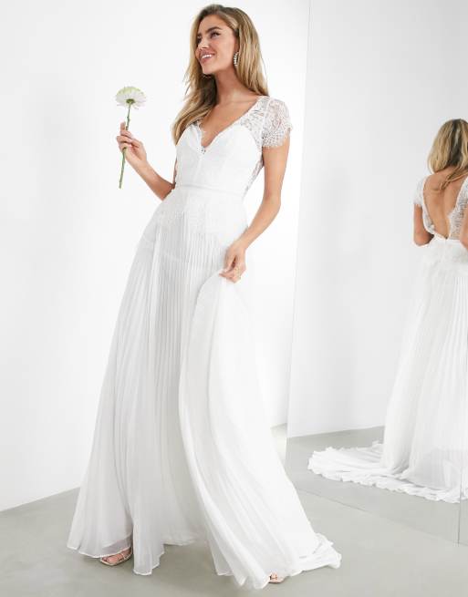 Asos Edition Plunge Lace Wedding Dress With Pleated Skirt Asos