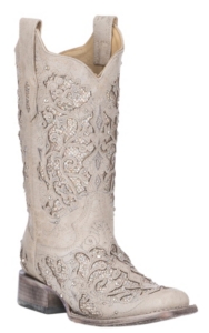 Corral White Glitter Inlay With Crystals Square Toe Wedding Boot