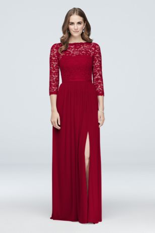 Illusion Lace And Mesh 3 4 Sleeve Bridesmaid Dress David S Bridal