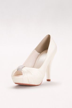 Charmeuse Pleated Peep Toe With Crystal Ornament David S Bridal