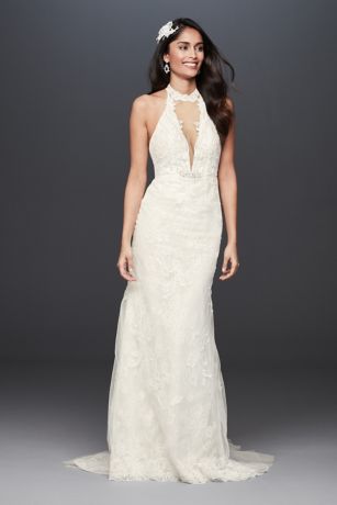 Lace High Neck Halter Sheath Wedding Dress David S Bridal