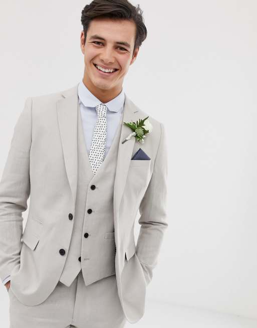 River Island Wedding Skinny Linen Suit Jacket In Ecru Asos