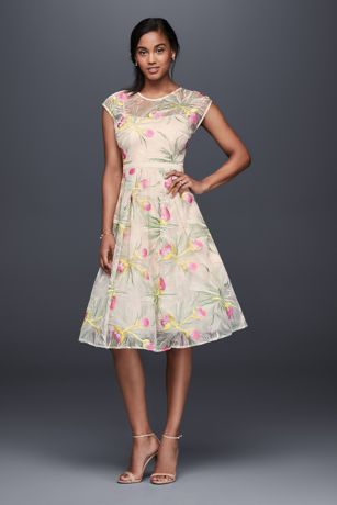 Embroidered Organza Fit And Flare Midi Dress David S Bridal