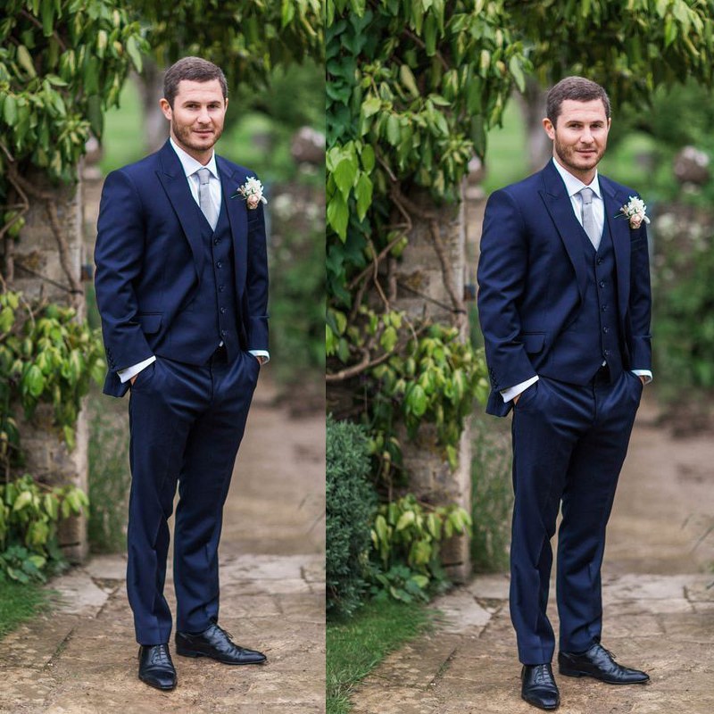 2019 Navy Blue Mens Wedding Suits Blazer Pants Vest Groom Suit
