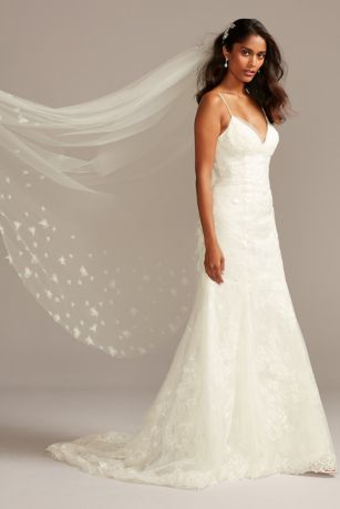Floral Lace Applique Spaghetti Strap Wedding Dress David S Bridal