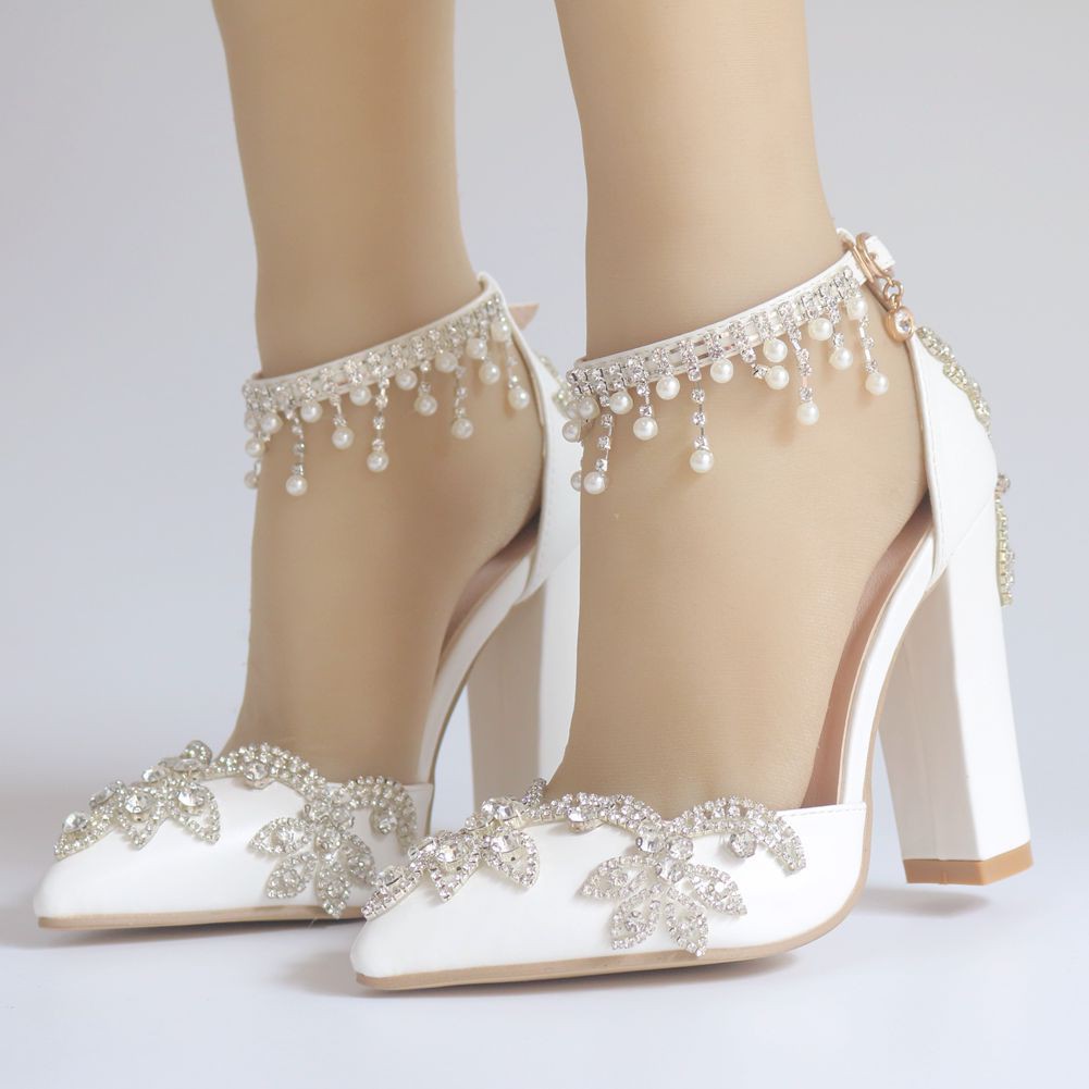 Baoyafang New Arrival Thick Heel Pointed Toe Womens Wedding Shoes