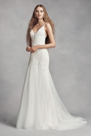 White By Vera Wang Bias Tier Trumpet Wedding Dress David S Bridal