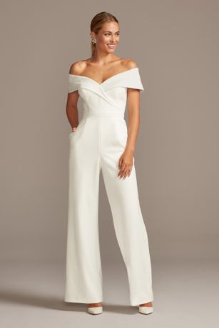 Cuffed Off The Shoulder Stretch Crepe Jumpsuit David S Bridal